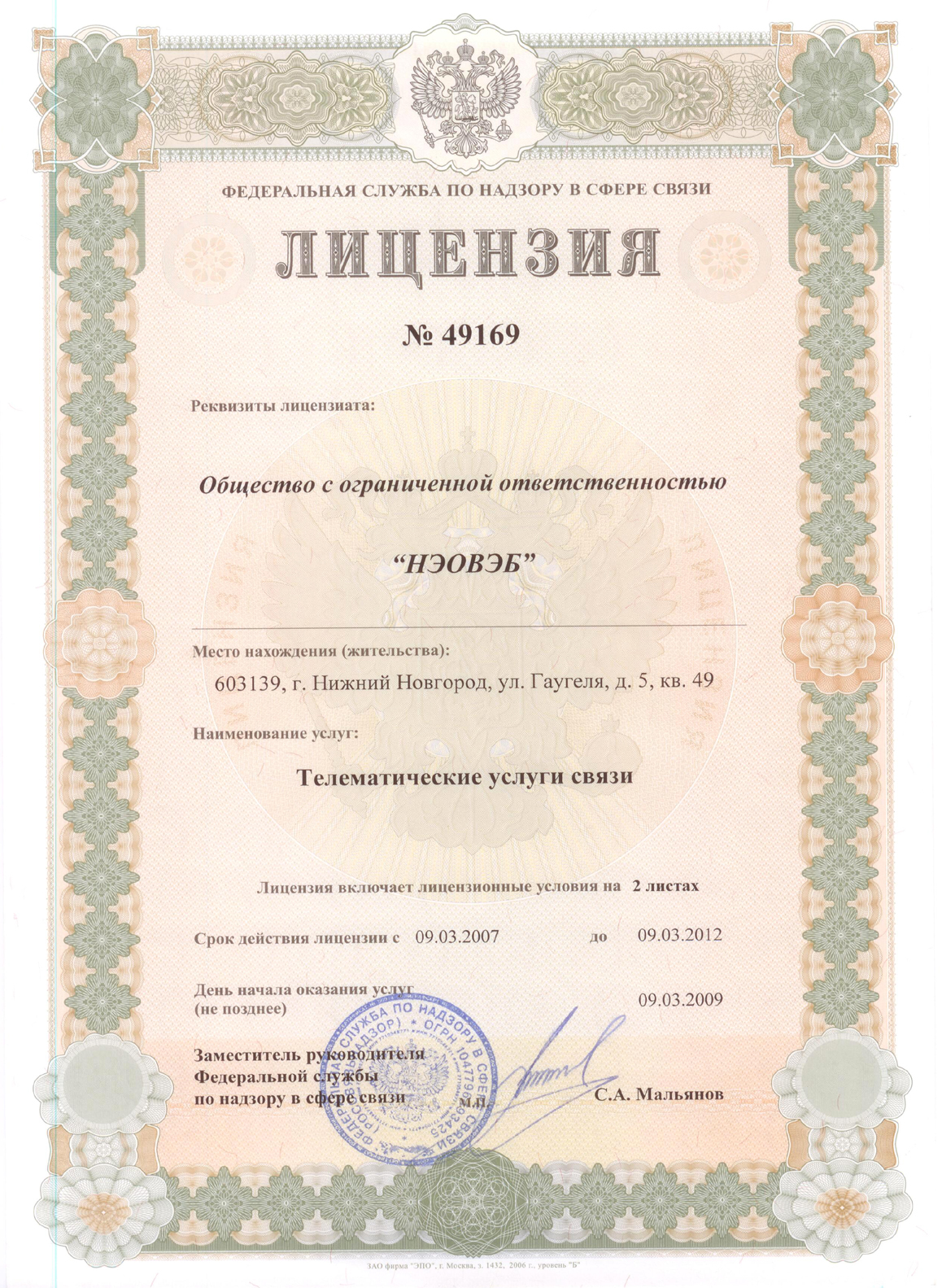 Все услуги предоставляются на основе Лицензии на предоставление услуг телематических служб № 49169